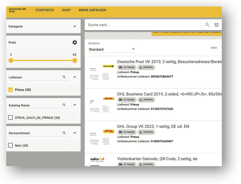 Für Unternehmen mit mehr als ca. 20 Besteller:innen ist das prinux-Portal die bessere Lösung. Damit können prinzipiell alle Mitarbeitenden einer Organisation bestellen, ohne dass sie zuvor als User:innen von prinux angelegt werden müssen. Somit kann beispielsweise jede:r die eigenen Visitenkarten „in Selbstbedienung“, aber auch weitere Sorten für Kolleg:innen beschaffen.